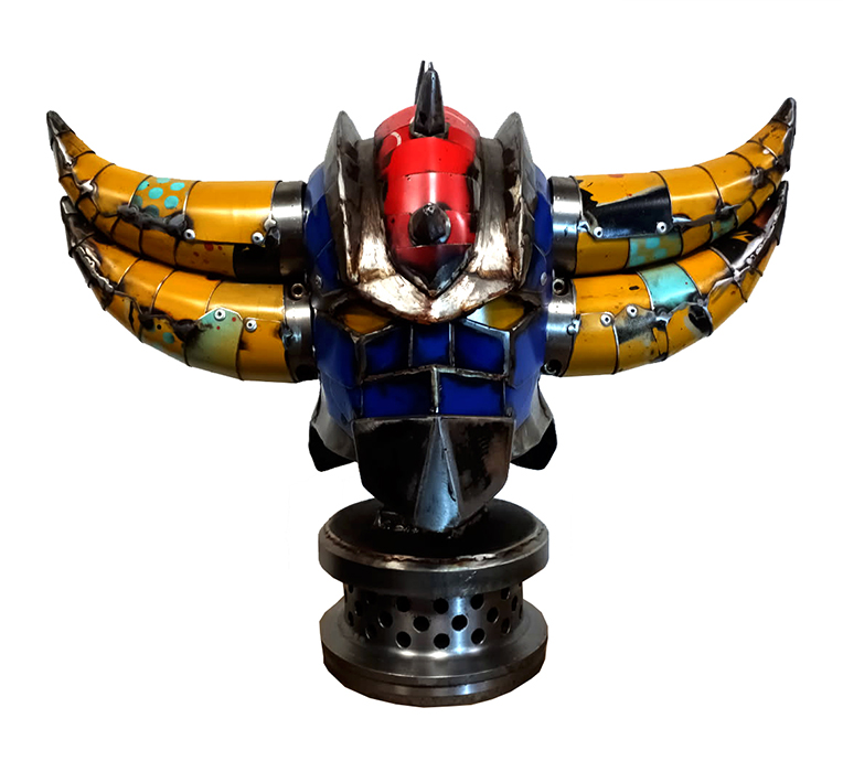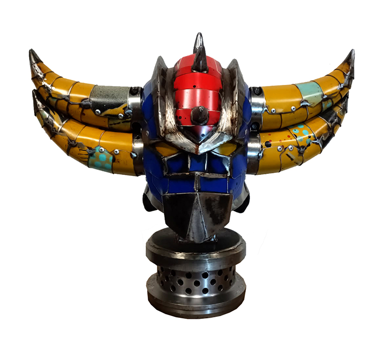 "Buste Goldorak" Sculpture unique en métal recyclé / 60 cm x 76 cm x 35 cm / VENDUE