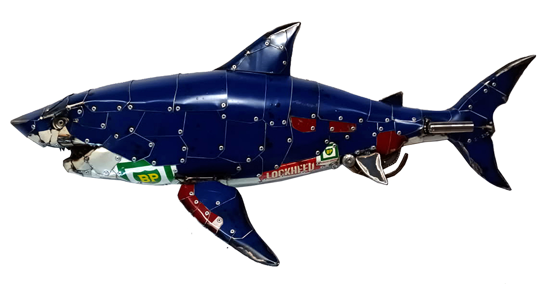 "Red shark" Sculpture unique en métal recyclé / 42 cm x 98 cm / VENDUE